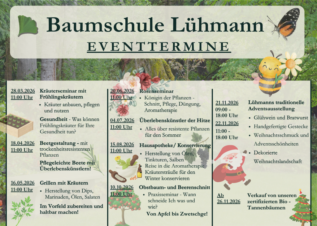 Auch in diesem Sommer ist die Baumschule Lühmann am Langenberg für sie da! Alle Interessierten sind herzlich eingeladen, sich von der strahlenden Pracht des Sommers inspirieren zu lassen. Von Mai bis August erwartet Sie eine bunte Vielfalt an Sommerblühern, Kräutern und Sonnenliebe. Entdecken Sie eine Auswahl an blühenden Pflanzen, duftenden Rosen, sowie eine Fülle von Sommerkräutern, die Ihre Sinne betören.